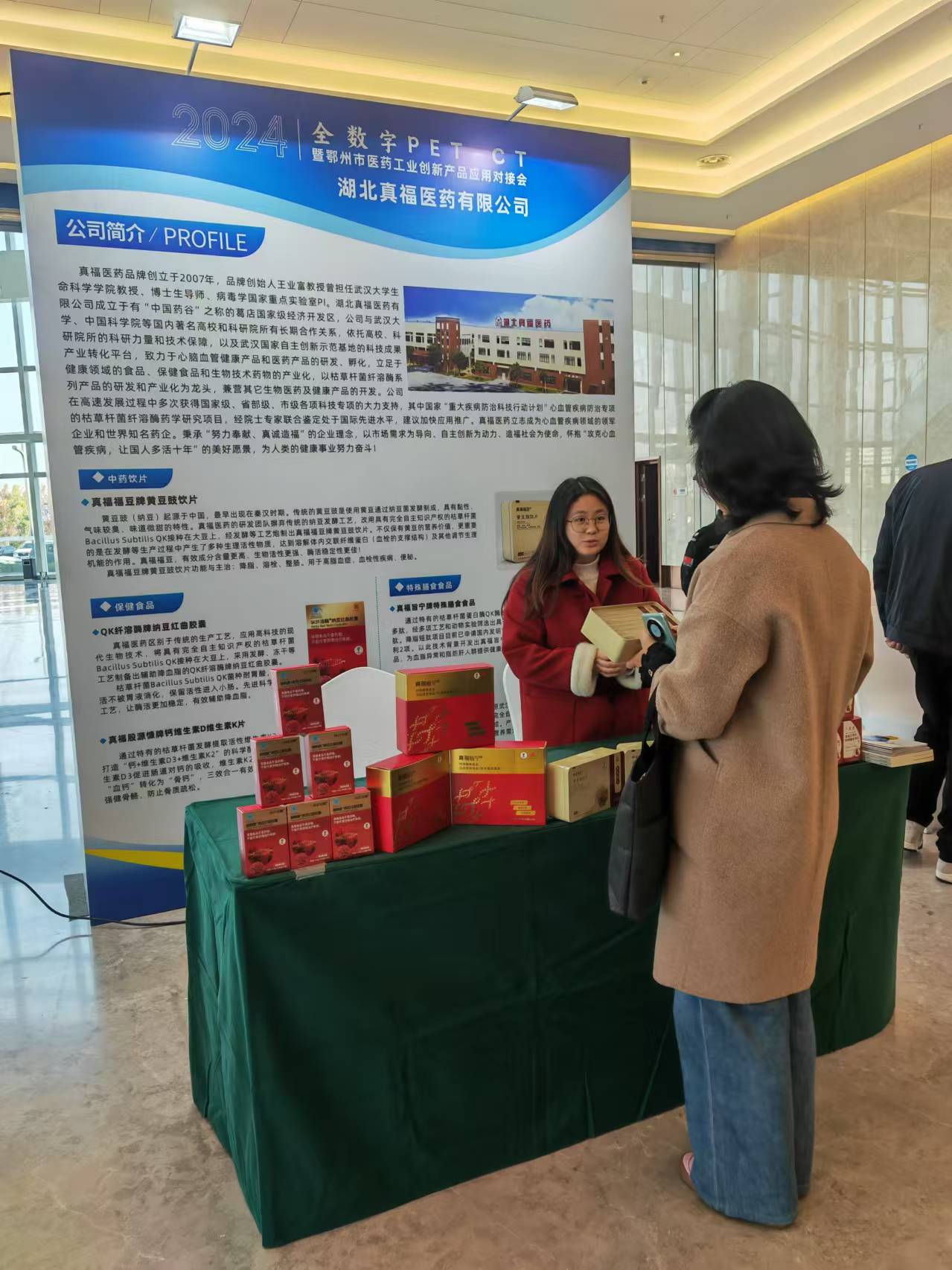 為推動(dòng)醫(yī)藥工業(yè)創(chuàng)新成果轉(zhuǎn)化,加強(qiáng)企業(yè)間交流合作,2024年11月26日,由湖北省衛(wèi)生健康委員會、鄂州市人民政府聯(lián)合主辦,鄂州市衛(wèi)生健康委員會、鄂州市科學(xué)技術(shù)局、鄂州市經(jīng)濟(jì)和信息化局承辦的【2024暨鄂州市醫(yī)藥工業(yè)創(chuàng)新產(chǎn)品應(yīng)用對接會】在鄂州國際會展中心圓滿舉辦,旨在搭建一個(gè)高效的溝通與合作平臺,促進(jìn)醫(yī)藥工業(yè)創(chuàng)新產(chǎn)品在本地乃至更廣泛區(qū)域的落地應(yīng)用,加速醫(yī)藥產(chǎn)業(yè)的協(xié)同創(chuàng)新與升級轉(zhuǎn)型。真福醫(yī)藥作為專注于心腦血管健康領(lǐng)域的代表,受邀參加本次對接會,展示公司最新的創(chuàng)新產(chǎn)品與前沿技術(shù)。